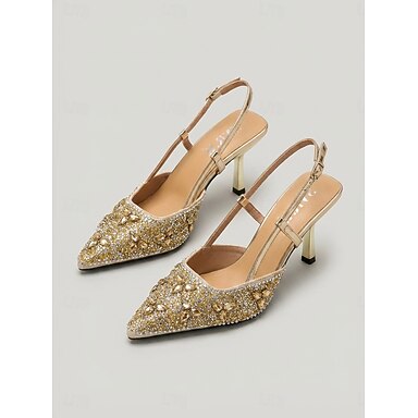 Sapatos de salto slingback femininos com detalhes dourados – elegantes sapatos de bico fino para convidadas de casamento no jardim &eventos formais de verão