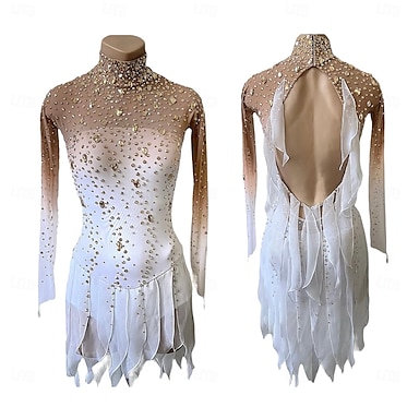 Vestidos para Patinação Artística Para Meninas Patinação no Gelo Vestidos Branco Azul Céu Patchwork Sem costas Com Stretch Treino Competição Roupa para Patinação Clássico Cristal / Strass Manga Longa