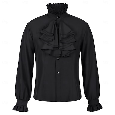 Punk e gótico Medieval Renascentista Camisa Manga Comprida Cavalheiro Côr Sólida Fantasia Homens Real Baile de Máscaras Festa Espetáculo Mascarilha Adulto Camisa