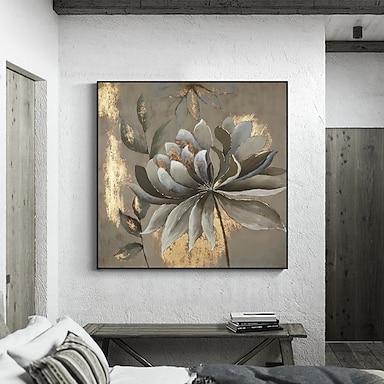 Pintura a óleo abstrata de flores douradas, pintada à mão por Mintura, sobre tela. Arte moderna para decoração de parede. Pintura enrolada, sem moldura e sem esticar.
