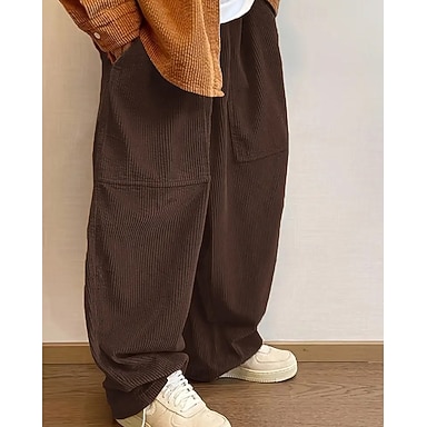 Homens Calças Calças de Veludo Calça de moletom de perna reta Com Cordão Bolsos Cintura elástica Tecido Conforto Respirável Ao ar livre Casual Diário Moda Estilo Clássico Preto Marron