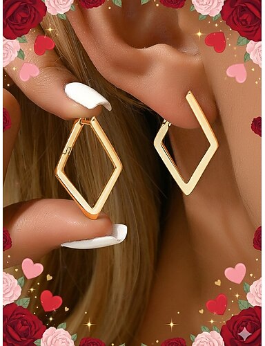 brincos de argola de ouro geométricos minimalistas em formato de diamante – joias elegantes para mulheres, perfeitas para uso diário e ocasiões especiais