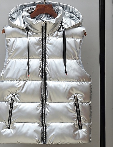 Homens Colete puffer Colete Gilet Férias Diário Encontro Moda Casual Outono & inverno Bolsos Fibra Sintética Manter Quente Confortável Côr Sólida Zíper Com Capuz Normal Prata Preto Vermelho Prata