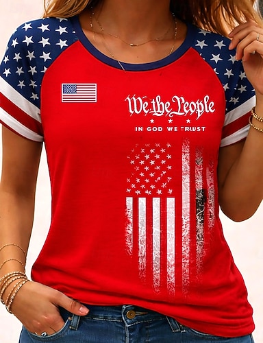 Dia da Independência Americana Mulheres Camiseta Imprimir Gráfico Bandeira à moda Clássico Casual Manga Curta Gola Redonda Decote Redondo Tops regulares Diário Azul Vermelho Vermelho / Azul Verão