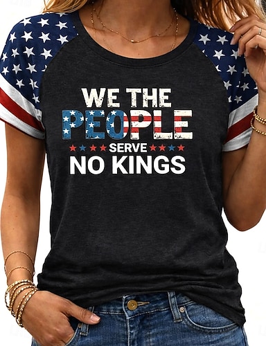 Dia da Independência Americana Mulheres Camiseta Imprimir Gráfico Bandeira americana Vintage à moda Clássico Manga Curta Gola Redonda Decote Redondo Tops regulares Casual Diário Azul Preto Branco