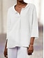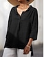 Mulheres Camisas de algodão e linho Linho de algodão sintético Renda Patchwork Côr Sólida à moda Casual Manga 3/4 Decote V Tops regulares Diário Preto Branco Vinho Azul Marinha Verão Primavera