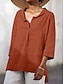 Mulheres Blusa Linho de algodão sintético Franzido Côr Sólida à moda Casual Manga 3/4 Decote V Tops regulares Diário Preto Branco Laranja Verão Primavera