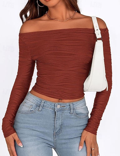 Mulheres Camiseta T-shirt Côr Sólida Elegante Moda à moda Manga Longa Ombro a Ombro Tops regulares Diário Para Noite Final de semana Preto Branco Rosa Verde Tropa Vermelho Primavera Outono