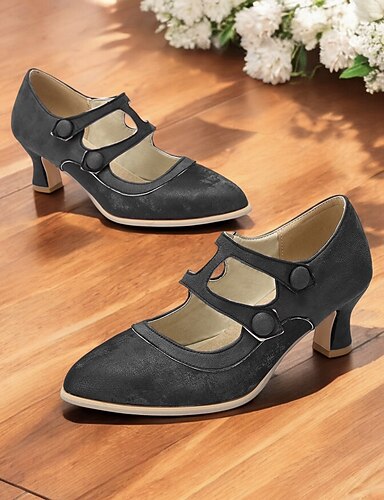 Sapatos de salto médio com recortes vintage dos anos 1930 para mulheres – sapatos retrô de couro sintético para dança swing, chás da tarde e moda pin-up