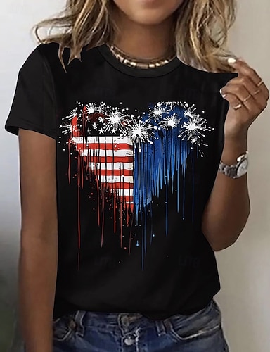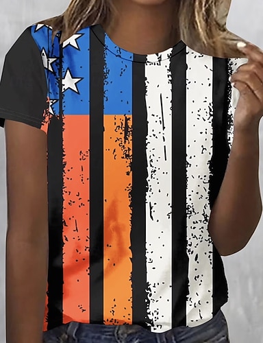 Dia da Independência Americana Mulheres Camiseta Imprimir Gráfico Bandeira à moda Clássico Casual Manga Curta Gola Redonda Decote Redondo Tops longos Diário Azul Preto Branco Vermelho Verão Primavera