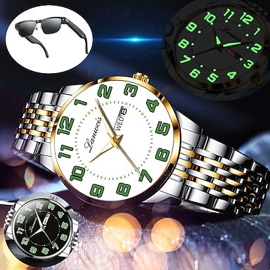 Os relógios de quartzo femininos são modernos, casuais e elegantes, com detalhes em strass e mostradores luminosos com calendário duplo, tornando-os a melhor opção de presente para mulheres.