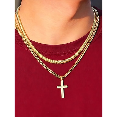 Colar com pingente de cruz de aço inoxidável masculino, joia de corrente durável e moderna, presente cristão estiloso para natal, festa e uso diário