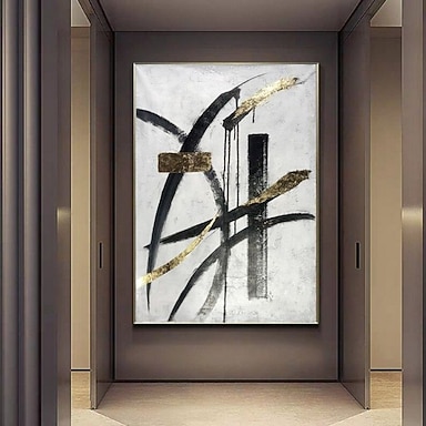 Pinturas a óleo feitas à mão em tela de parede arte decoração moderna simples preto branco linha dourada abstrata para decoração de casa pintura sem moldura enrolada não esticada