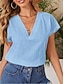 Camiseta Feminina de Linho Sintético como Algodão Simples Fashion Estilosa Clássica Manga Curta Decote em V Tops Regulares Diários Fim de Semana Azul Preto Branco Amarelo Rosa Verão Primavera