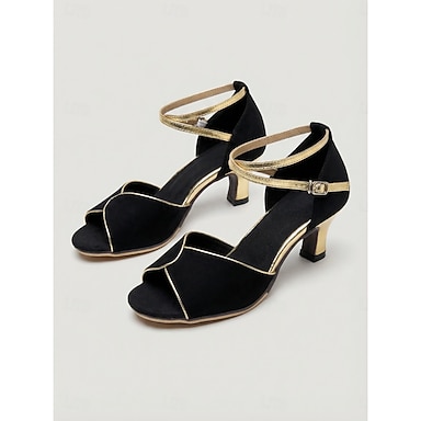preto feminino &Sapatos de dança latina dourados, com bico aberto e tira no tornozelo, ideais para salsa, tango e dança de salão. & treinamento