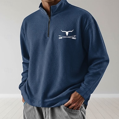Homens Vaca Moletom Diário Clássico Casual vaqueiro ocidental Colarinho Chinês Quarter Zip Ao ar livre Casa Escritório Trabalho Preto Azul Marron Verde Tropa Cinzento Zip Up Outono Inverno Designer S
