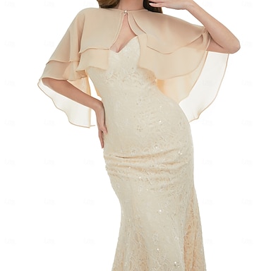 Estolas Femininas Envoltórios da mãe Agasalhos de noiva Envelopamentos de convidados de casamento Capa Elegante senhoras Estilo Formal Sem Manga Poliéster Estolas de Casamento Com Cor Pura Para Diário