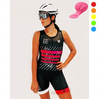 Mulheres Macacão para Triathlon Manga Curta Ciclismo de Montanha Ciclismo de Estrada Verão Primavera Preto Verde Rosa + verde Retalhos Tiras Horizontais Engraçado Moto Ciclismo Secagem Rápida Esticar