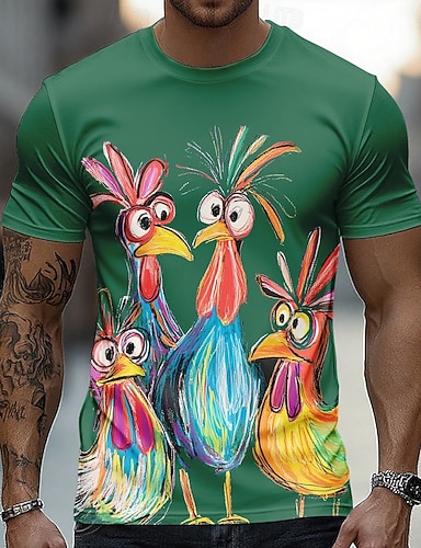 Homens Animal Galo Engraçado Camiseta Manga Curta Camiseta Impressão 3D Gola Redonda Camisa Exagerado Designer Festa Feriado Azul Branco Roxo Verão Primavera Roupa S M L XL XXL XXXL