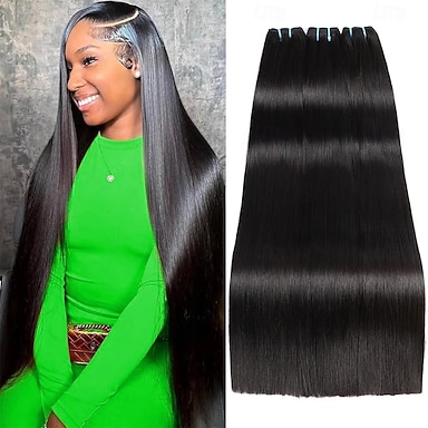 1 pacote de extensões de cabelo humano remy, cabelo brasileiro liso com fios duplos, extensões de cabelo humano brasileiro com fios remy.