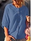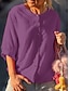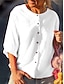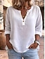 Mulheres Blusa Camisa de linho sintético Botões Côr Sólida Vintage à moda Casual Manga 3/4 Decote V Tops regulares Diário Branco Amarelo Verde Tropa Cinza Claro Azul Claro Verão Primavera Outono