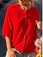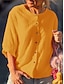 Mulheres Linho de algodão sintético Botões Côr Sólida Vintage à moda Básico Manga 3/4 Gola Redonda Tops regulares Diário Azul Preto Branco Amarelo Vermelho Verão Primavera Outono