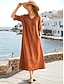 Mulheres Vestido midi Linho de algodão sintético Vestido de turno Casual Diário Ajuste Largo Tecido Manga 3/4 Decote V Laranja Verão Primavera Outono