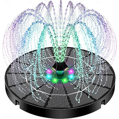 Fonte de banho para pássaros movida a energia solar, com bomba de fonte solar RGB e luzes LED coloridas para jardim, pequeno lago, piscina externa e peixes.