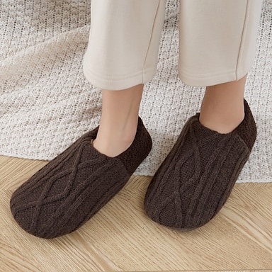 Pantufas forradas de lã de malha para homens e mulheres, sapatos quentes e antiderrapantes para ambientes internos e externos com forro de pelúcia aconchegante