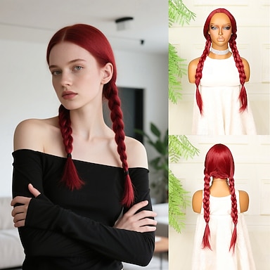 Perucas sintéticas Crochê Entrançado Parte do meio Trança Peruca 24 polegadas Vermelho Vinho Cabelo Sintético 24 polegada Mulheres Macio Confortável Vinho