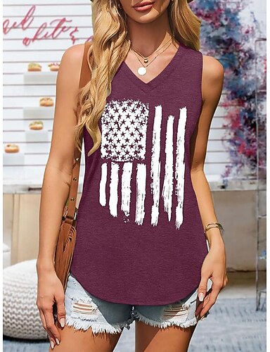 Dia da Independência Americana Mulheres Malha Íntima Imprimir Gráfico Bandeira Vintage Tropical à moda Sem Manga Decote V Tops regulares Diário Preto Branco Vermelho Azul Marinha Verão Primavera