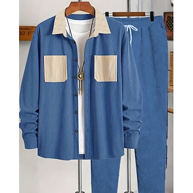 Homens Moletom Camisa Camisas e Calças Conjunto Lapela Ao ar livre Férias Diário Com Cordão Bolsos Bloco de cor Azul Preto Verde Tropa Roupas Esportivas Esportes Moda Outono