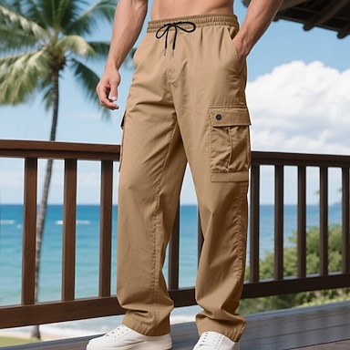Homens Bermuda Cargo Calção Shorts de linho Shorts de verão Shorts de praia Com Cordão Cintura elástica Bolso multi Tecido Conforto Respirável Comprimento do joelho Ao ar livre Diário Para Noite Moda