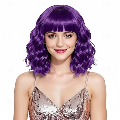 Peruca bob curto bob ondulado peruca com franja para mulheres solto encaracolado na altura dos ombros peruca sintética peruca cosplay para menina uso diário peruca colorida perucas cosplay