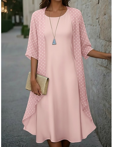 Mulheres Vestido midi Vestido casual Conjunto de vestido Elegante Moda Moderno Ao ar livre Férias Para Noite Normal Poá Manga 3/4 Gola Redonda Rosa Roxo Marron Verde Verão Primavera Outono