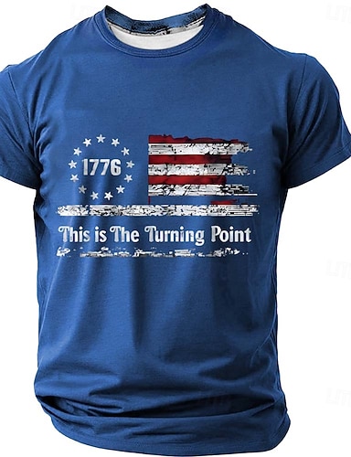 4 de Julho de 2026 250º Dia da Memória Camiseta Masculina com Estampa 3D da Bandeira dos EUA Decote Redondo Manga Curta Rua Dia a Dia