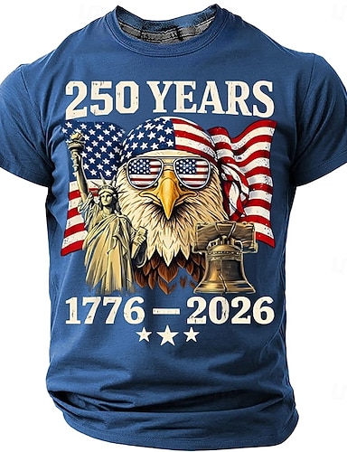 4 de julho de 2026 250º Dia da Memória T-Shirt Masculina 3D Impressão com Decote Redondo de Manga Curta Rua Diária
