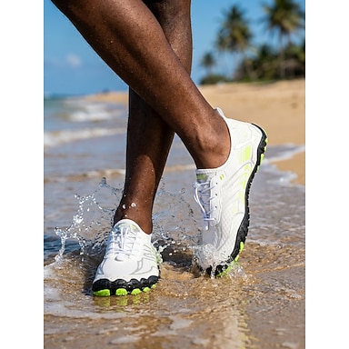 Tênis aquáticos masculinos brancos de secagem rápida, leves e respiráveis, antiderrapantes, ideais para atividades aquáticas como natação, caminhadas na praia, trilhas em rios, caiaque e aventuras ao ar livre.