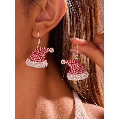 brincos de papai noel natalinos femininos com strass e contas coloridas, joias festivas para o feriado