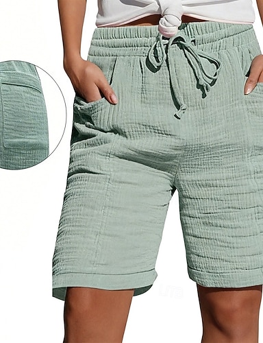 Mulheres Bermudas Calção Shorts de verão Shorts de praia Férias Moda Casual Diário Comprimento do joelho Cintura Alta Côr Sólida Tecido Com Cordão Bolsos Cintura elástica Conforto Macio Respirável