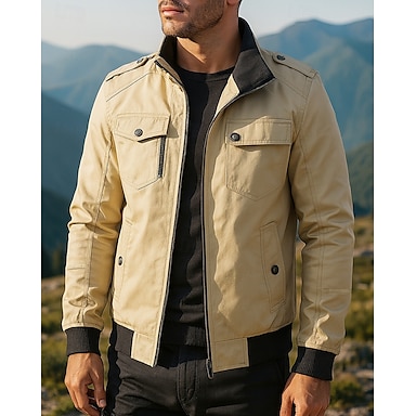 Homens Jaqueta Carga Jaqueta Tática Jaqueta de tarefa Casual Para Noite Jaqueta Corta-Vento Bolso interno Primavera Outono Tecido Moda Clássico Colarinho de Camisa Padrão Azul Marinha cáqui Verde
