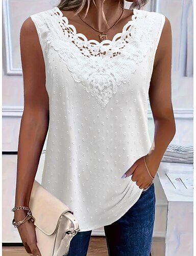 Mulheres Top de emenda de renda Blusa Renda Patchwork Ilhó Floral Elegante Vintage à moda Sem Manga Gola Redonda Tops regulares Diário Feriado Para Noite Preto Branco Damasco Verão Primavera Outono