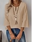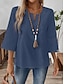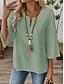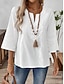 Mulheres Blusa Camisa de algodão Renda Patchwork Côr Sólida Diário à moda Básico Manga 3/4 Decote V Tops regulares Diário Azul Branco Verde Cáqui Verão Primavera Outono
