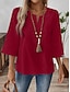 Mulheres Camisa de renda Blusa Tops elegantes Tops de chiffon Barra Assimétrica Côr Sólida Floral Gráfico Elegante à moda Básico Meia Manga Mangas Evasê Decote Canoa Tops regulares Diário Trabalho