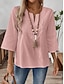 Mulheres Camisa Social Blusa Tops de renda Renda Côr Sólida à moda Clássico Moderno Manga 3/4 Decote V Tops regulares Diário Feriado Para Noite Azul Preto Branco Verde Claro Rosa Verão Primavera