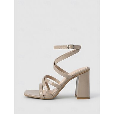 Sandálias femininas nude com salto bloco e tiras - sapatos elegantes para festas de coquetel