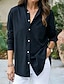 Mulheres Camisa Social camisa de verão Camisa casual camisa de botão Bolsos Botões Côr Sólida Tecido Férias Moda Diário Manga Longa Aberto para a Lateral Tops regulares Streetwear Praia Feriado Preto