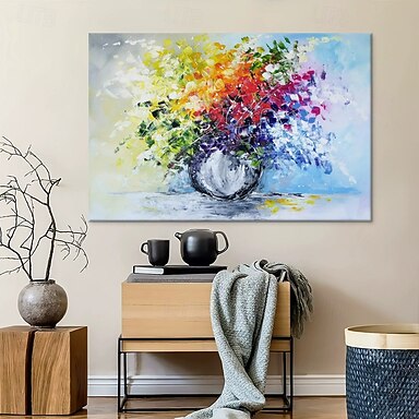 Pintura a óleo artesanal em tela, arte de parede moderna com espátula, natureza morta floral abstrata para decoração de casa, pintura esticada em moldura / tela enrolada (sem moldura).