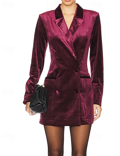 Mulheres Minivestido Vestido de veludo Vestido de festa Vestido Coquetel Vestido blazer Elegante Moda Festa de Noite Festa Coquetel Normal Tecido Manga Longa Colarinho de Camisa Preto Vinho Verde