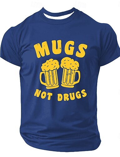 Camiseta "Canecas, não drogas" - Camiseta divertida com estampa de cerveja, estilo vintage, humor alcoólico, presente para homens, roupas e vestuário, tamanhos P, M, G, GG, XGG, XXGG